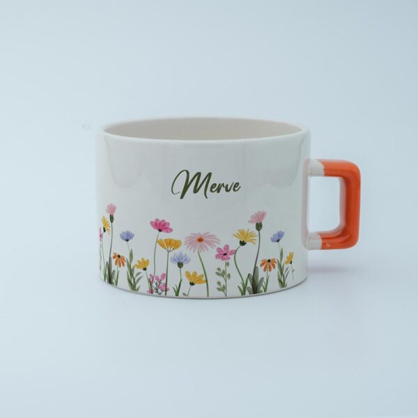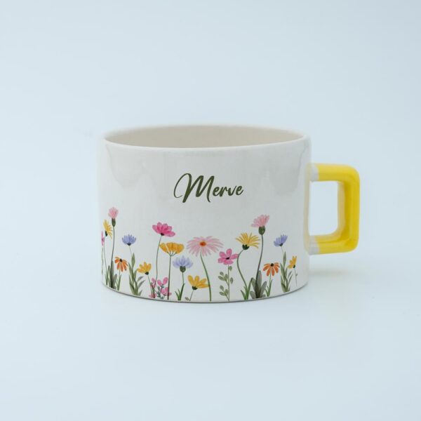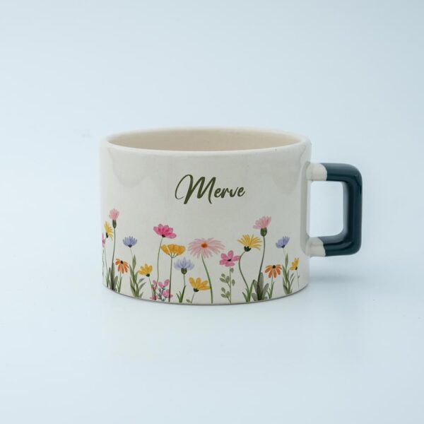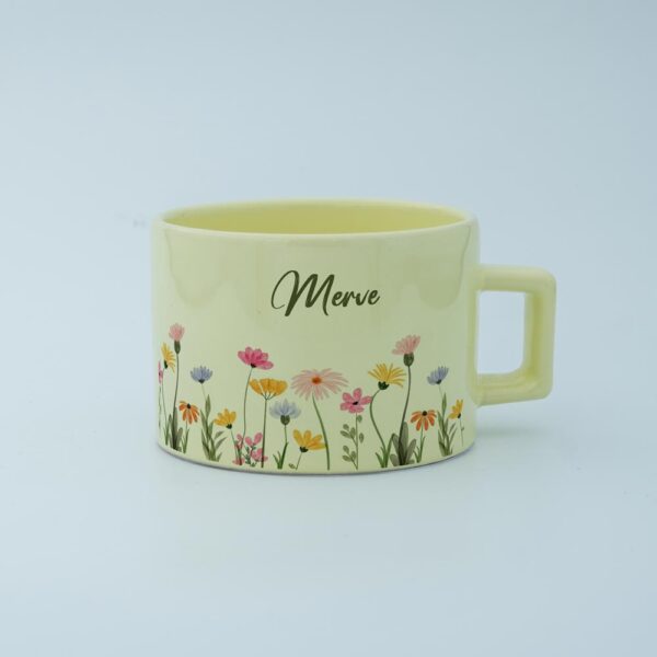 Güne iç açıcı bir başlangıç yapmak isteyenler için tasarlanan bu özel kupa, doğanın taze enerjisini sofranıza taşıyor. Zarif çiçek illüstrasyonları ve modern formun birleştiği bu tasarım, kahve ve çay saatlerinize eşsiz bir dokunuş katacak.