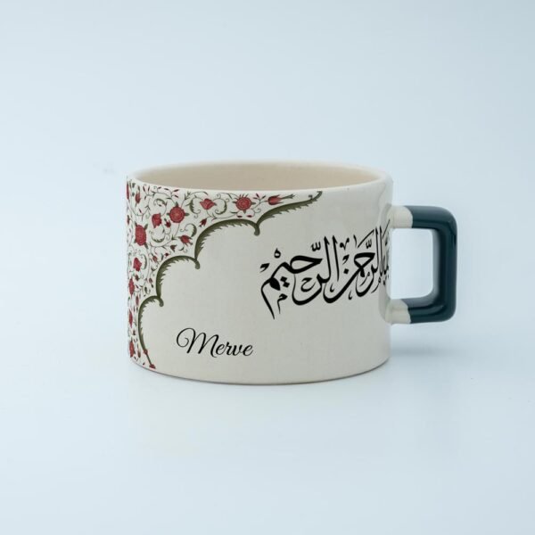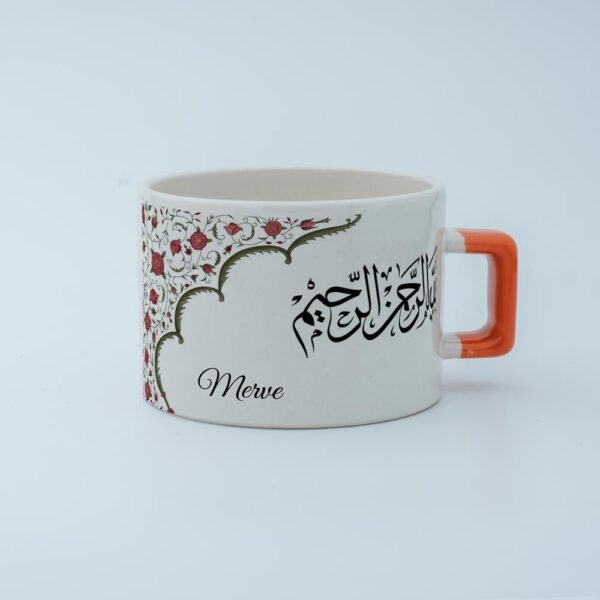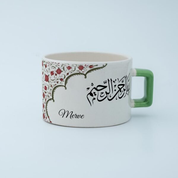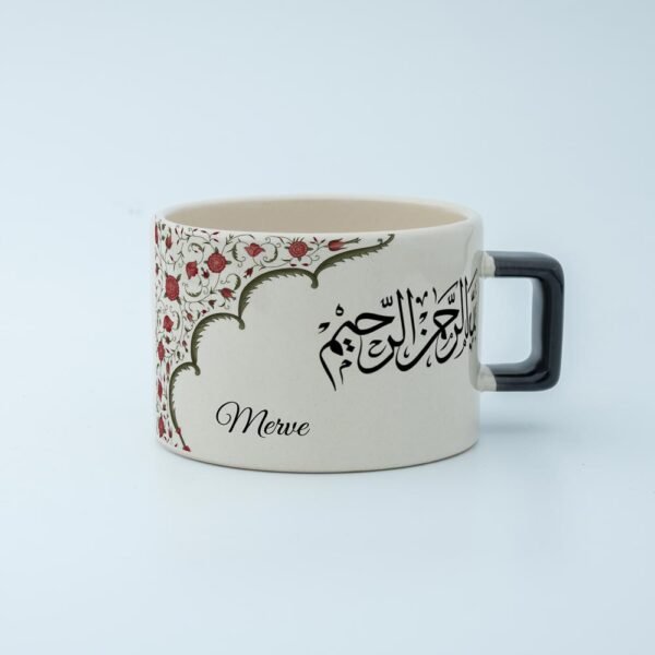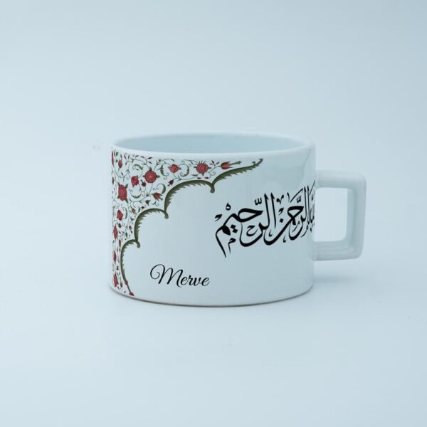 Fincanın orta kısmında Arapça besmele yazısı, arka yüzünde ise isminiz bulunur.