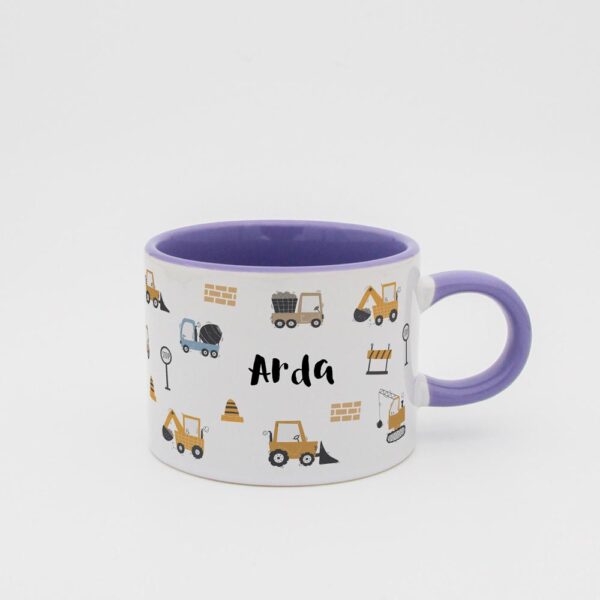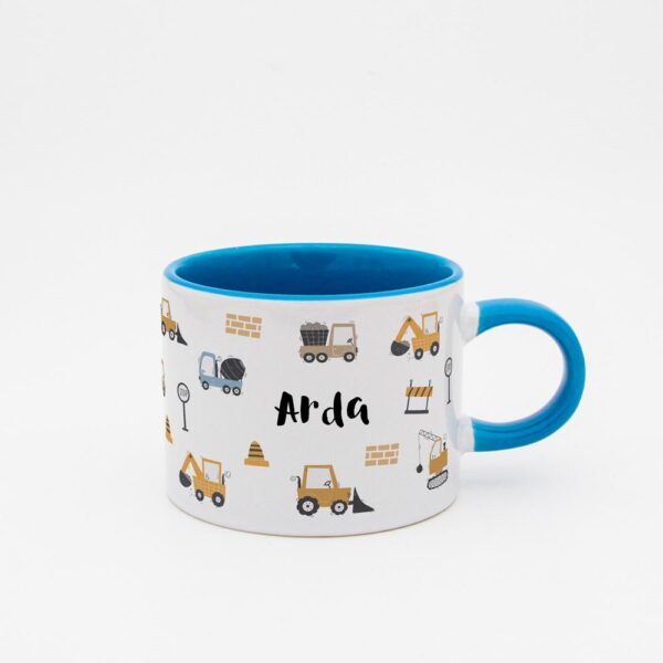 Çocuklarınızın en sevdiği iş makinelerini bir araya getiren bu özel tasarım fincan ile onların kahvaltı veya atıştırma zamanlarını daha eğlenceli hale getirin! Bu renkli ve sevimli fincan, çocuklarınızın isimleriyle kişiselleştirilerek onlara özel bir hediye olacaktır.