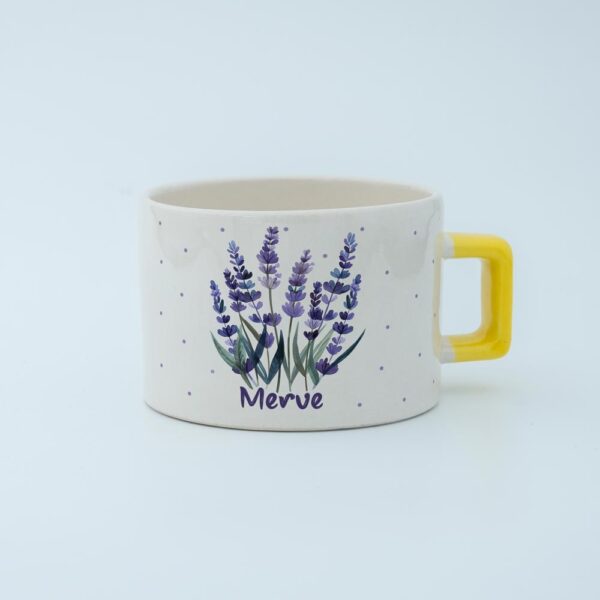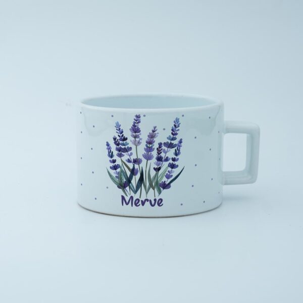 İsme özel lavantalı fincanımız, sıradan bir fincandan çok daha fazlasını sunar. Canlı lavanta desenleri ve kişiye özel isminizle tasarlanan bu fincan, her yudumda size keyifli anlar yaşatır.