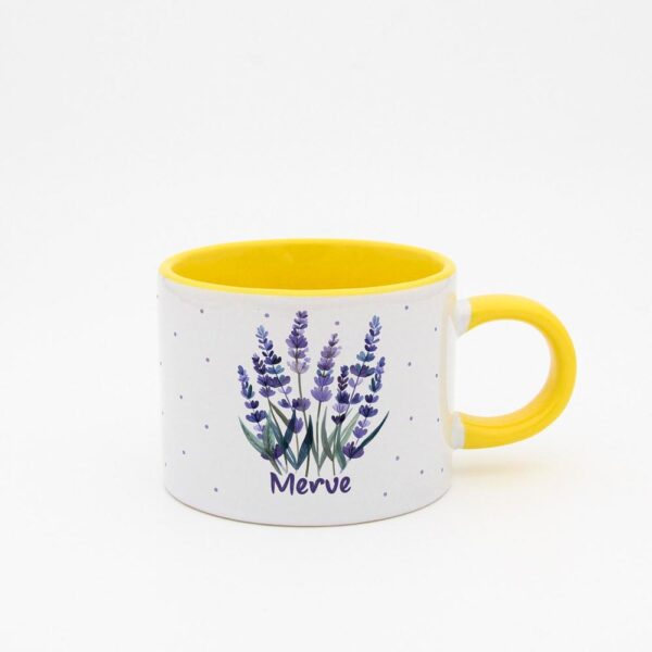 İsme özel lavantalı fincanımız, sıradan bir fincandan çok daha fazlasını sunar. Canlı lavanta desenleri ve kişiye özel isminizle tasarlanan bu fincan, her yudumda size keyifli anlar yaşatır.