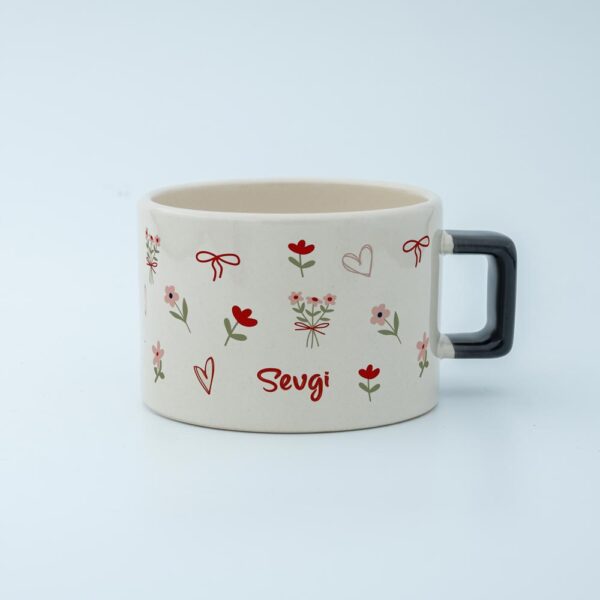 Zarif ve kişisel bir hediye arıyorsanız, isme özel pembe çiçekli fincan tam size göre! Bu özel tasarım fincan, üzerine dilediğiniz ismi yazdırarak sevdiklerinize unutulmaz bir sürpriz yapmanızı sağlar.