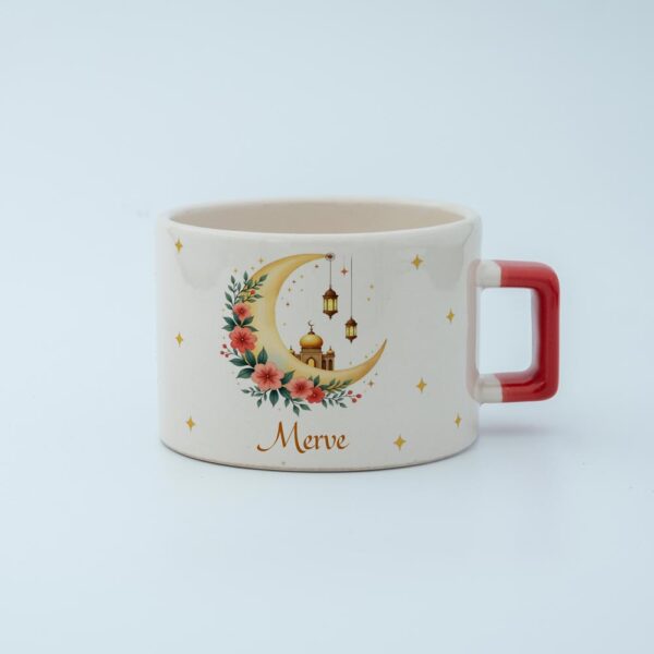 Ramazan ayının huzurunu ve sıcaklığını her yudumda hissetmeye ne dersiniz? Zarif hatları ve geleneksel motiflerin modern bir yorumuyla tasarlanan bu isme özel fincan, sahur ve iftar sofralarınızın vazgeçilmezi olacak.