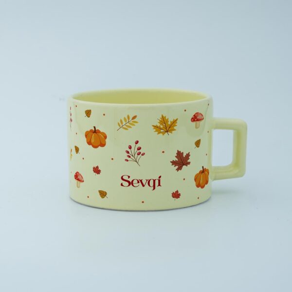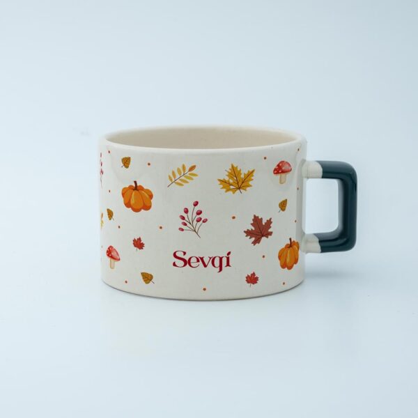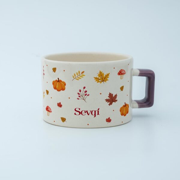 Elinize aldığınız andan itibaren sonbaharın sıcaklığını hissettirecek, tamamen size özel bir fincanla tanışın! Bu fincan, canlı renklerdeki yaprakları ve balkabağı deseniyle süslenmiştir.
