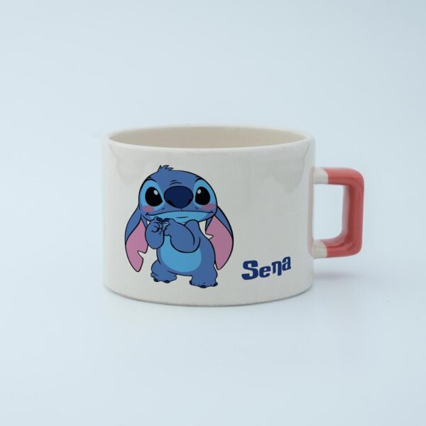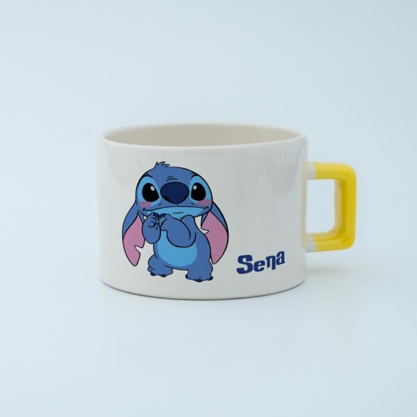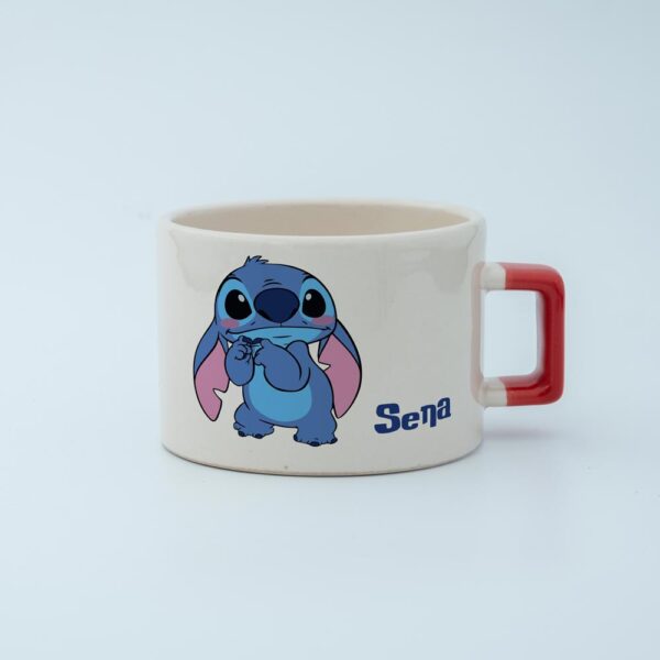 Çocukların çok sevdiği Stitch karakteri, bu sevimli fincanla şimdi sofralarınızda! Canlı renkleri ve eğlenceli tasarımıyla bu fincan, kahvaltılarınızı, çay ve kahve molalarınızı daha keyifli hale getirecek. Ön yüzünde isim ve Stitch karakteri, arka yüzünde Stitch ve Lilo görseli bulunur.